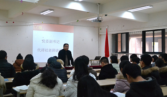 代祥社副書(shū)記講話(huà),他首先向預(yù)備黨員們表示歡迎和祝賀,并對(duì)預(yù)備黨員們提出更高的要求和殷切的希望,鼓勵(lì)大家積極參與國(guó)內(nèi)各高校間的交流互動(dòng),希望同學(xué)們多在各類(lèi)期刊雜志上發(fā)表文章,為貴州大學(xué)一流學(xué)科與一流高校的建設(shè)貢獻(xiàn)自己的一份力量,為新貴大的建設(shè)添磚加瓦,勉勵(lì)大家成為一名新時(shí)代的合格黨員。