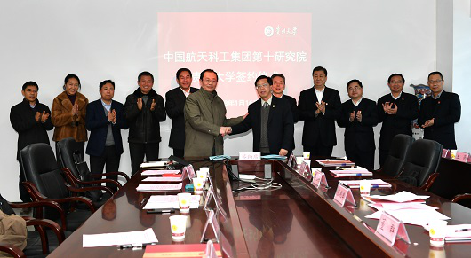 1月16日下午,我校與中國航天科工集團第十研究院戰(zhàn)略合作協(xié)議簽約儀式在機械工程學(xué)院會議室舉行。航天十院領(lǐng)導(dǎo)張兆勇、董群、李君山、鮑斌、張忠榮,校領(lǐng)導(dǎo)陳堅、王紅蕾、金道超,機械工程學(xué)院院長李少波、黨委書記安明剛出席儀式,航天十院及我校相關(guān)部門負(fù)責(zé)人,機械工程學(xué)院副院長楊勤、何鋒、黨委副書記代祥社參加儀式。