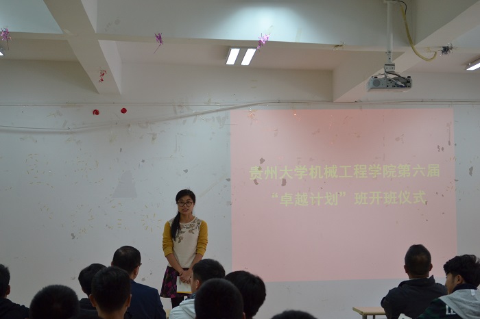機械工程學院網訊(記者 羅鴻 報道|攝影 范順鑫)11月9日中午,貴州大學機械工程學院于機械樓327舉行第六屆“卓越計劃”班開班儀式。我院副院長趙津、何鋒,楊綠老師出席本次活動,本次開班儀式由干雪梅老師主持。