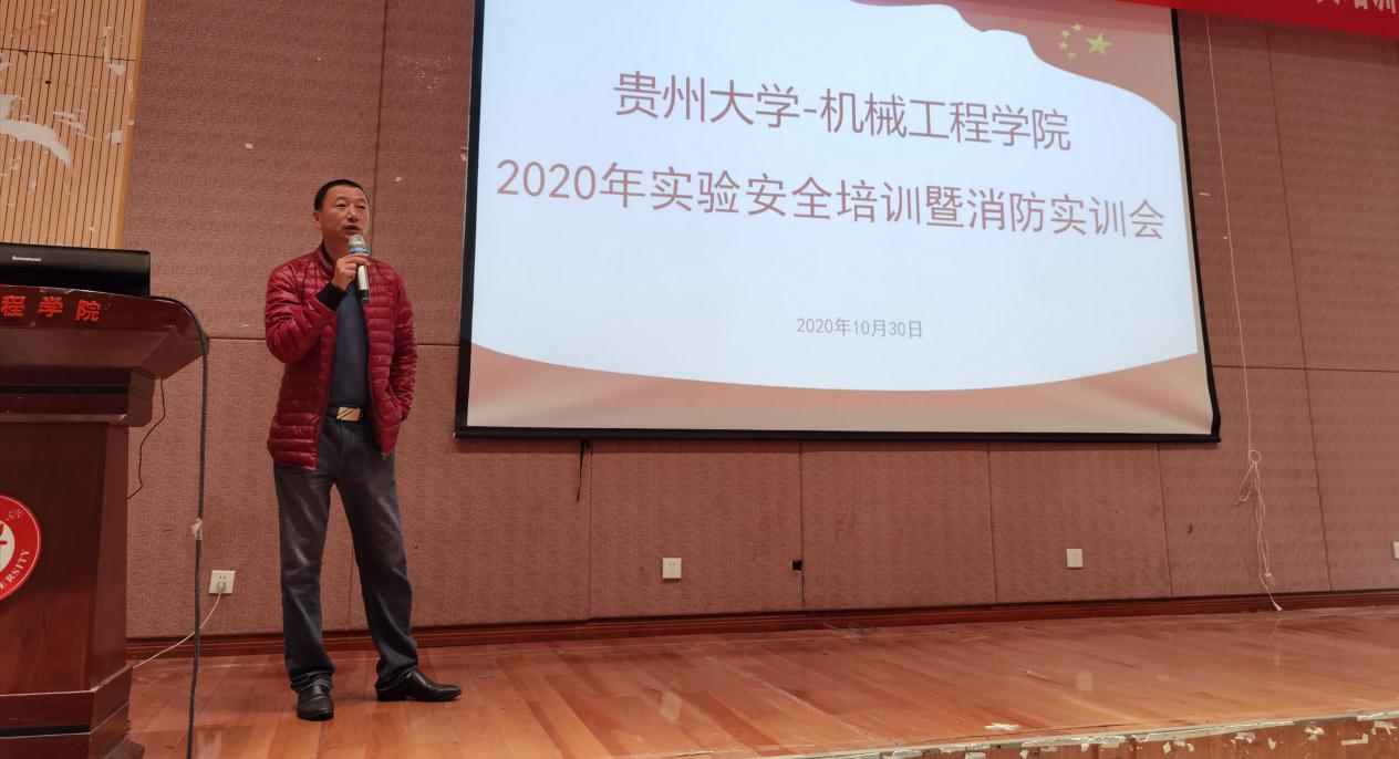 2020年10月30日9點(diǎn)30分,機(jī)械工程學(xué)院于圓形報告廳舉行了貴州大學(xué)機(jī)械工程學(xué)院2020年實(shí)驗(yàn)室安全培訓(xùn)暨消防實(shí)訓(xùn)會。機(jī)械工程學(xué)院副院長趙津教授,實(shí)驗(yàn)中心全體實(shí)驗(yàn)教師、科研實(shí)驗(yàn)室的教師及全體研究生出席了本次會議。