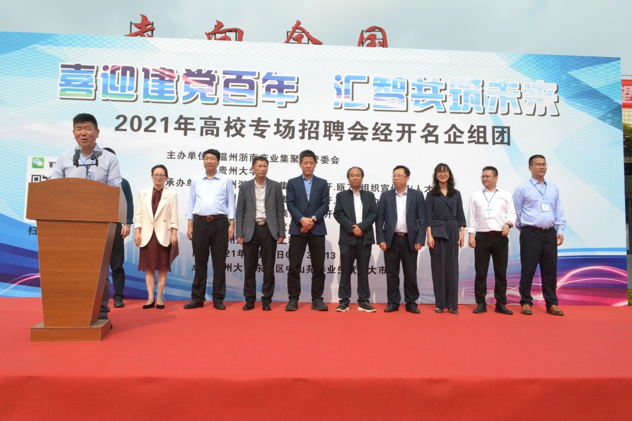 啟動(dòng)儀式上,貴州大學(xué)招生就業(yè)處主要負(fù)責(zé)人王忠於致辭。他首先介紹了貴州大學(xué)及機(jī)械工程學(xué)院的相關(guān)情況,他指出,貴州大學(xué)是部省合建和“雙一流”高水平大學(xué),機(jī)械工程學(xué)院擁有國(guó)家級(jí)和省級(jí)特色重點(diǎn)學(xué)科,具有現(xiàn)代制造技術(shù)教育部重點(diǎn)實(shí)驗(yàn)室、全國(guó)高校實(shí)踐育人創(chuàng)新創(chuàng)業(yè)基地,是國(guó)家機(jī)械工程類培養(yǎng)了大量高層次人才。希望借助此次活動(dòng),浙南沿海先進(jìn)裝備產(chǎn)業(yè)集聚區(qū)各企事業(yè)單位能在貴州大學(xué)招收到大量的優(yōu)秀人才。