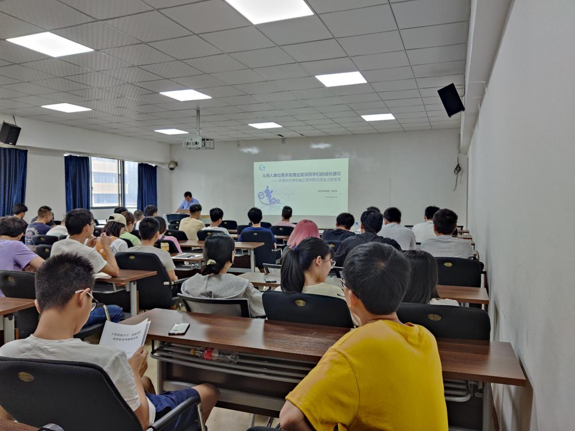 機械工程網(wǎng)站訊(記者 袁 銀|攝影 陳世婕)2021年6月21日,機械工程學(xué)院邀請了貴州出版集團版云大數(shù)據(jù)公司董事長、數(shù)字公司副總經(jīng)理、北京印刷學(xué)院新聞出版專業(yè)研究生導(dǎo)師、貴州大學(xué)公共管理學(xué)院MPA研究生導(dǎo)師張忠凱在機械樓416教室為學(xué)院全體研究生開展了以“從用人單位需求實情談同學(xué)們的成長建議”的就業(yè)講座。