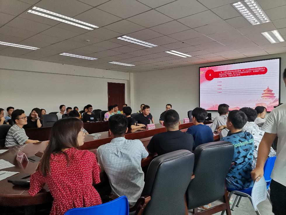 在準備階段,組織了全體研究生和本科生黨員開展了賽前學(xué)習(xí)。比賽現(xiàn)場分為必答和搶答兩個環(huán)節(jié)。在必答環(huán)節(jié)。經(jīng)過賽前對黨史知識的學(xué)習(xí),各參賽支部需隨機回答五道黨史題來檢驗學(xué)習(xí)成果,并由工作人員現(xiàn)場核對答案,得出必答環(huán)節(jié)的占比成績。在搶答環(huán)節(jié)中,各支部五人為1組,搶答共30題,答對得分,答錯扣分。