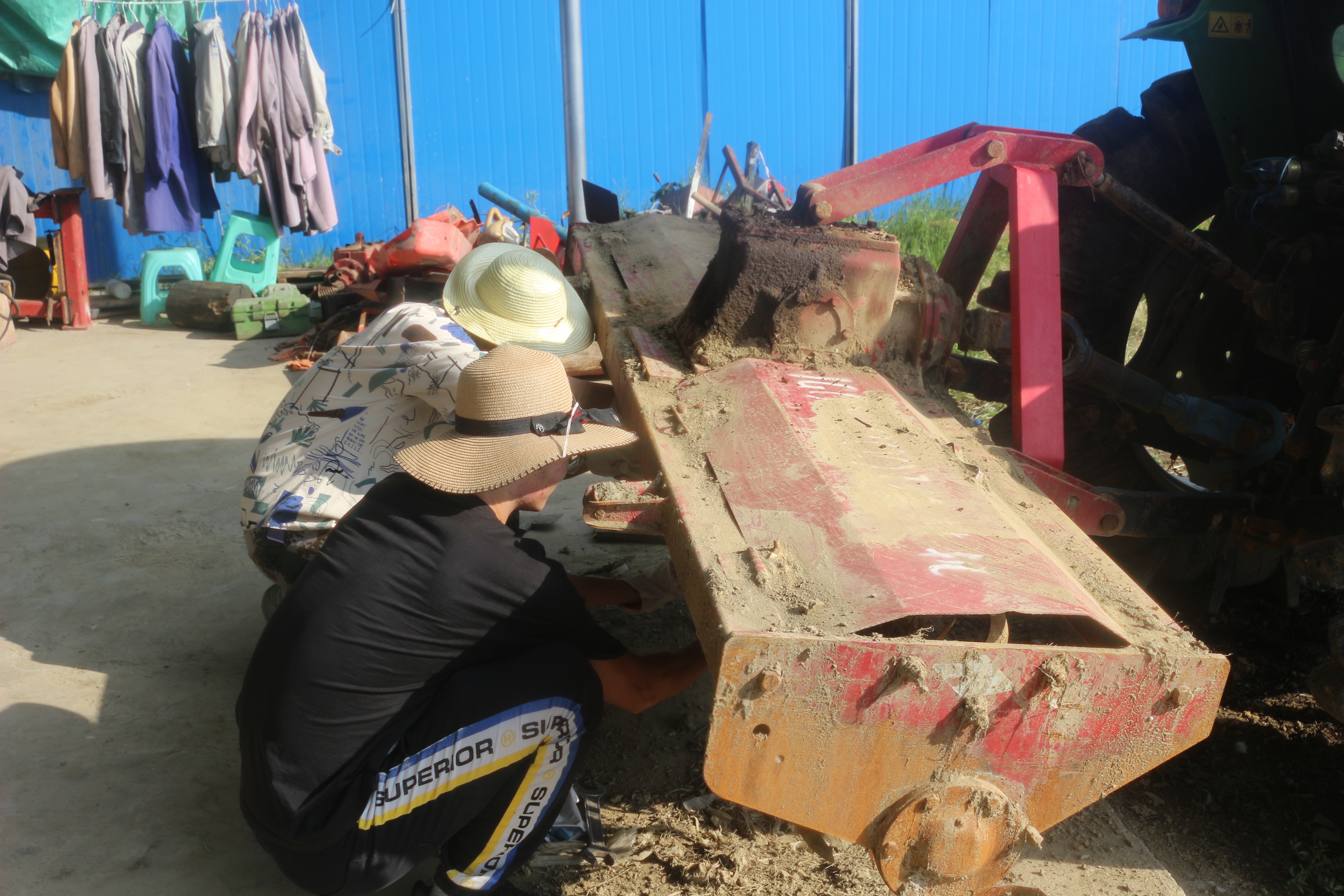 同學(xué)對(duì)農(nóng)機(jī)進(jìn)行維修保養(yǎng)