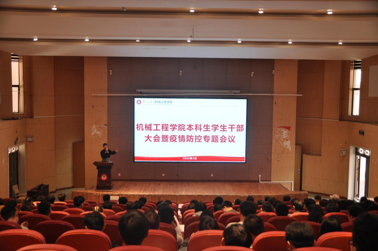 機(jī)械工程網(wǎng)站訊(記者 徐馳|攝影 鄧子航 楊麗)為更好的開展疫情防控工作和學(xué)生日常工作,機(jī)械工程學(xué)院于2022年3月18日在機(jī)械樓圓形報(bào)告廳召開了本科生學(xué)生干部暨疫情防控專題會(huì)議。機(jī)械工程學(xué)院黨委副書記廖燁出席會(huì)議,學(xué)生科老師何琳煜、趙麗芳、聶虹以及機(jī)械工程學(xué)院全體學(xué)生干部參加會(huì)議。