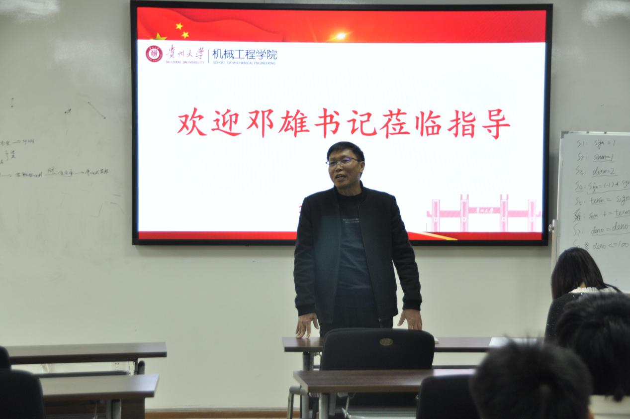 機械工程學院黨委副書記廖燁對鄧雄書記表示熱烈歡迎,并對他前來指導看望學生表示衷心感謝。