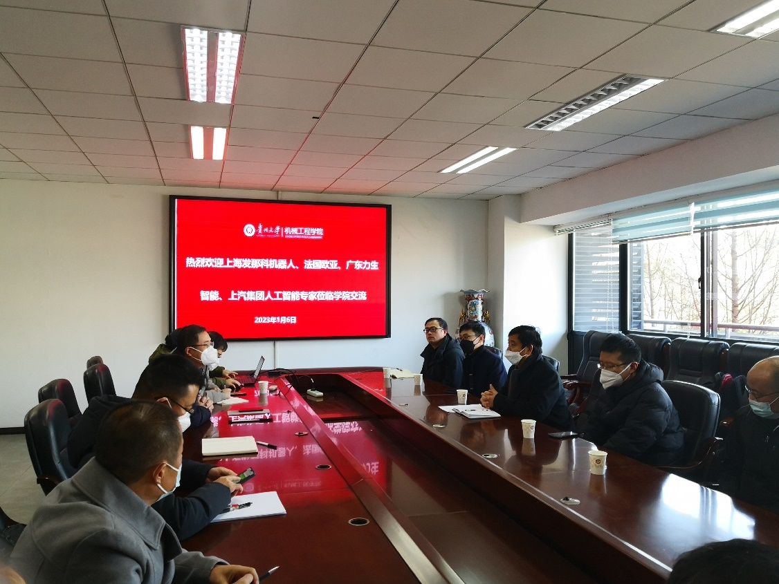 2023年1月6日下午,貴州大學(xué)機(jī)械工程學(xué)院與上海發(fā)那科機(jī)器人、法國(guó)歐亞集團(tuán)、廣東力生智能、上汽集團(tuán)人工智能實(shí)驗(yàn)室以及貴州省政府駐上海辦事處、貴陽市政府駐上海聯(lián)絡(luò)處在機(jī)械樓518會(huì)議室舉行合作交流洽談會(huì)。法國(guó)歐亞集團(tuán)董事長(zhǎng)李貴生、上海發(fā)那科機(jī)器人市場(chǎng)拓展部副部長(zhǎng)張海峰、廣東力生智能有限公司董事長(zhǎng)張高強(qiáng)、上汽集團(tuán)人工智能實(shí)驗(yàn)室總經(jīng)理金忠孝、貴州省駐上海辦事處業(yè)務(wù)處副處長(zhǎng)王海濤、貴陽市人民政府駐上海聯(lián)絡(luò)處梁華處長(zhǎng)出席了會(huì)議,機(jī)械工程學(xué)院趙津院長(zhǎng)、張大斌、蔡家斌、唐正強(qiáng)等教授參與了會(huì)議。
