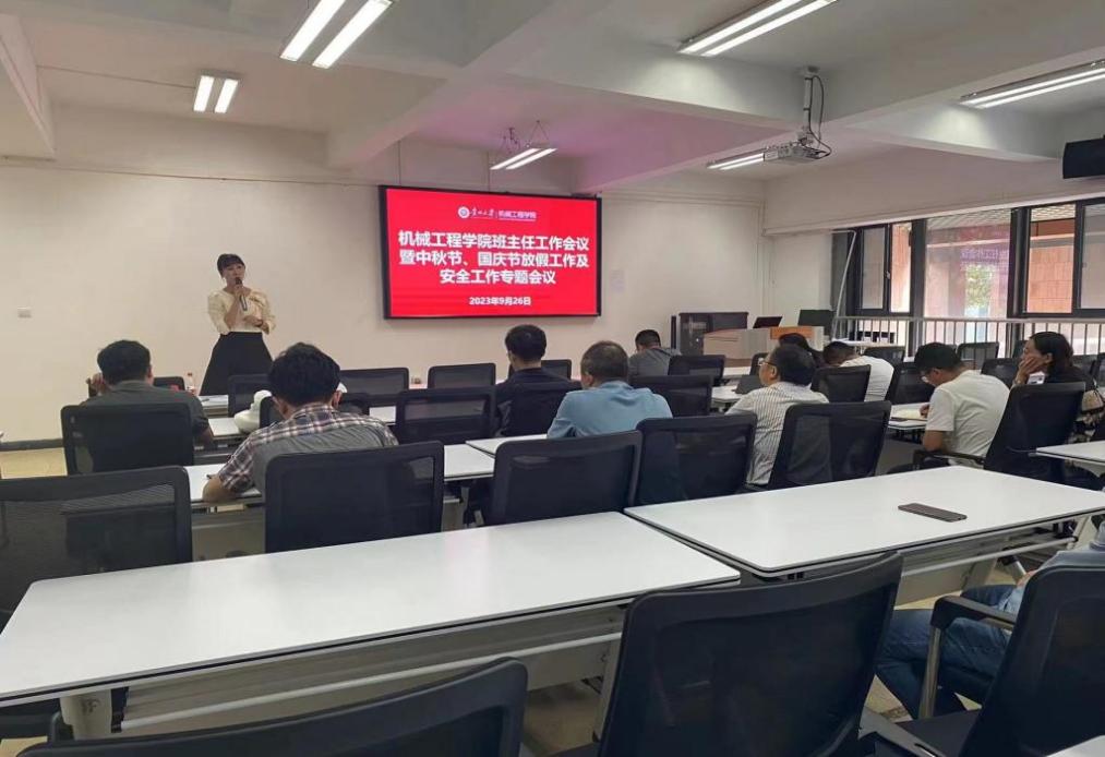 為切實(shí)加強(qiáng)班主任隊(duì)伍建設(shè),做好中秋節(jié)、國(guó)慶節(jié)學(xué)生安全教育管理工作,2023年9月26日,機(jī)械工程學(xué)院在327召開班主任工作會(huì)議暨中秋、國(guó)慶節(jié)前安全工作專題會(huì)議。學(xué)院正處級(jí)組織員董蔚然、黨委副書記廖燁出席,全體班主任老師以及學(xué)生科輔導(dǎo)員共計(jì)50余人參加會(huì)議。