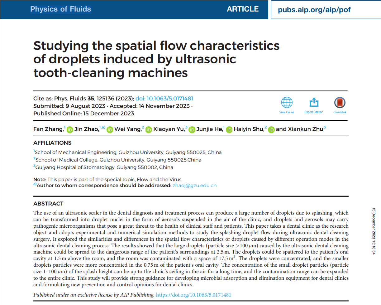近十年來(lái)世界范圍內(nèi)接連遭受到多次新發(fā)、再發(fā)重大傳染病的威脅。牙科診所是特別容易受到呼吸道傳染疾病影響的醫(yī)療機(jī)構(gòu)之一,牙科診療過(guò)程中使用超聲波潔牙機(jī)因噴濺可產(chǎn)生大量飛沫,進(jìn)而轉(zhuǎn)化為飛沫核以氣溶膠的形式懸浮留存于診室空氣中,如果患者口腔內(nèi)攜帶血液傳播病毒或呼吸道傳播病毒,這些病毒會(huì)以飛沫作為載體在空氣中進(jìn)行傳播。貴州大學(xué)機(jī)械學(xué)院趙津教授、醫(yī)學(xué)院楊威教授和貴陽(yáng)市口腔醫(yī)院余曉燕主任組成的聯(lián)合課題組,針對(duì)現(xiàn)階段潔牙手術(shù)過(guò)程中引發(fā)的飛沫流動(dòng)機(jī)理尚不清楚,造成口腔診療飛沫吸附消殺設(shè)備的研制尚未完善,出現(xiàn)飛沫吸附不完全、噪音大、結(jié)構(gòu)設(shè)計(jì)不符合人機(jī)工程學(xué)影響醫(yī)生手術(shù)和患者感受等問(wèn)題,開(kāi)展研究。