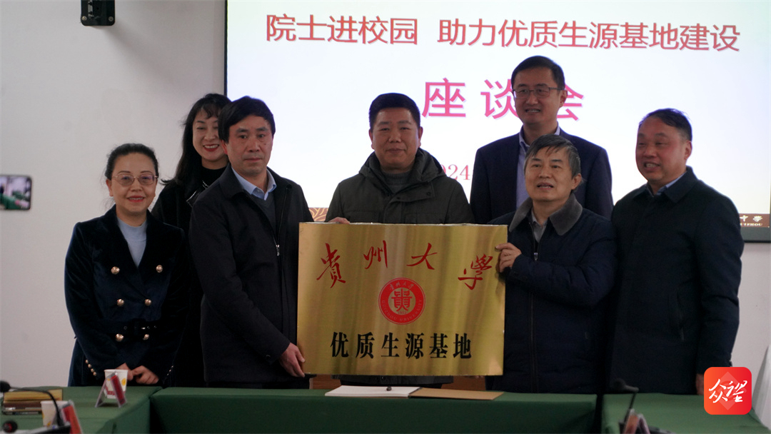 宋寶安校長與高三學(xué)生一起栽種“院士樹”。隨后雙方在學(xué)校會議室進行座談,并為銅仁一中送上“貴州大學(xué)優(yōu)質(zhì)生源基地”牌匾。