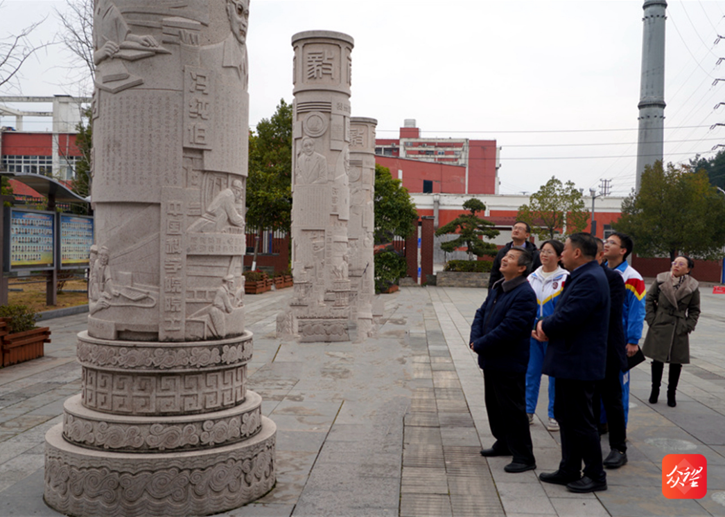 宋寶安校長一行在銅仁一中書記李茂潮,黨委副書記、校長舒崇進的陪同下參觀了銅仁一中“院士柱”。