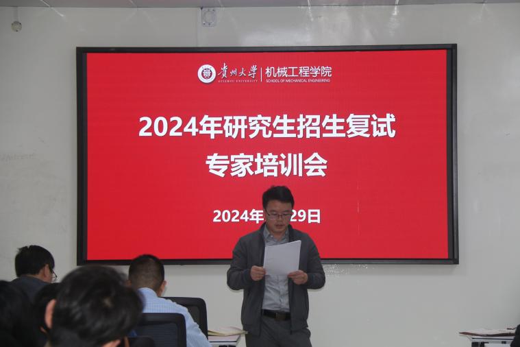 為保證研究生復試工作有序、規(guī)范,2024年3月29日中午13點,機械工程學院在機械樓416教室召開了2024年研究生復試專家培訓會。會議由唐正強副院長主持,學院班子成員、研究生科、復試專家等相關(guān)人員等共計59人參會。