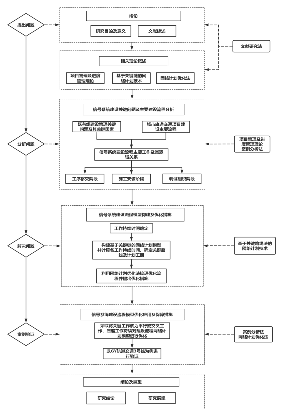 論文通過(guò)項(xiàng)目管理理論并結(jié)合既有線的建設(shè)經(jīng)驗(yàn)對(duì)城市軌道交通信號(hào)系統(tǒng)建設(shè)項(xiàng)目的主要建設(shè)階段及工作內(nèi)容進(jìn)行梳理,確定了各工作之間的邏輯關(guān)系;以正在建設(shè)的GY3號(hào)線一期工程信號(hào)系統(tǒng)為例,從建設(shè)單位角度采用基于關(guān)鍵路線法的網(wǎng)絡(luò)計(jì)劃技術(shù)建立了城市軌道交通信號(hào)系統(tǒng)建設(shè)流程網(wǎng)絡(luò)計(jì)劃模型,同時(shí)計(jì)算各工作的時(shí)間參數(shù)并確定關(guān)鍵路線及工期。論文在模型計(jì)劃工期不滿足既定工期的情況下,采用網(wǎng)絡(luò)計(jì)劃優(yōu)化技術(shù)對(duì)信號(hào)系統(tǒng)建設(shè)流程關(guān)鍵路線上的關(guān)鍵工作進(jìn)一步分解,對(duì)分解后的工作采用平行或交叉作業(yè)方式重新確定邏輯關(guān)系;并結(jié)合信號(hào)系統(tǒng)各聯(lián)鎖區(qū)的施工及調(diào)試工程量壓縮部分關(guān)鍵路線上關(guān)鍵工作的持續(xù)時(shí)間;最終使得優(yōu)化后的信號(hào)系統(tǒng)建設(shè)流程模型工期滿足既定工期要求。同時(shí)為避免非關(guān)鍵路線由于不可控因素變?yōu)殛P(guān)鍵路線進(jìn)而影響信號(hào)系統(tǒng)的建設(shè)工期,結(jié)合現(xiàn)場(chǎng)實(shí)際對(duì)非關(guān)鍵路線上的工作采取相應(yīng)保障措施,最終在既定工期內(nèi)完成了信號(hào)系統(tǒng)的建設(shè)任務(wù)。論文采用基于關(guān)鍵路線法建立的信號(hào)系統(tǒng)建設(shè)流程網(wǎng)絡(luò)計(jì)劃模型具有可操作性和可實(shí)施性,切實(shí)有效地指導(dǎo)信號(hào)系統(tǒng)按期完成工程建設(shè)任務(wù),同時(shí)可為行業(yè)內(nèi)其他參建單位提供參考,具有一定實(shí)際意義。