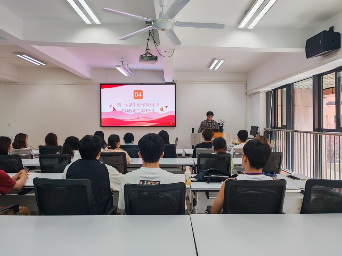 學(xué)生科趙麗芳老師帶領(lǐng)同學(xué)們深入學(xué)習(xí)中央八項(xiàng)規(guī)定出臺的相關(guān)背景、主要內(nèi)容和重要意義,引導(dǎo)同學(xué)們思考如何將中央八項(xiàng)規(guī)定融入到學(xué)習(xí)和生活中。學(xué)生黨員雷繽演結(jié)合自己的學(xué)習(xí)、生活和做學(xué)生干部工作的體會和感受,號召同學(xué)們要積極踐行中央八項(xiàng)規(guī)定。在學(xué)習(xí)上杜絕抄襲拼湊,認(rèn)真開展實(shí)驗(yàn),用真實(shí)的數(shù)據(jù)進(jìn)行論證,在學(xué)科競賽上要勇攀高峰,提高創(chuàng)新能力和動手能力;在生活上,要踐行勤儉節(jié)約,堅(jiān)持“光盤行動”、樹立理性消費(fèi)意識,不鋪張浪費(fèi);在學(xué)生工作上,開展活動提前做好詳細(xì)的規(guī)劃和預(yù)算,避免超支浪費(fèi),合理利用學(xué)校現(xiàn)有的場地和設(shè)備,減少不必要的開支,在與同學(xué)溝通交流時,摒棄官僚作風(fēng),真心實(shí)意為同學(xué)服務(wù),提高工作效率,切實(shí)解決同學(xué)們在學(xué)習(xí)和生活中遇到的實(shí)際問題。