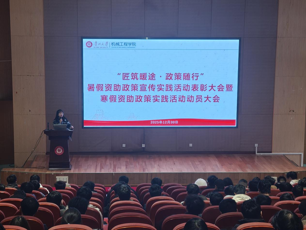 為深化資助育人成效,推動國家資助政策深入人心,2025年12月30日中午,機(jī)械工程學(xué)院組織召開2025-2026學(xué)年暑假資助政策宣講實(shí)踐活動總結(jié)表彰暨寒假實(shí)踐活動動員大會。黨委副書記廖燁出席會議并講話,學(xué)生科輔導(dǎo)員楊朵主持大會,受助本科生及黨員學(xué)生參會。