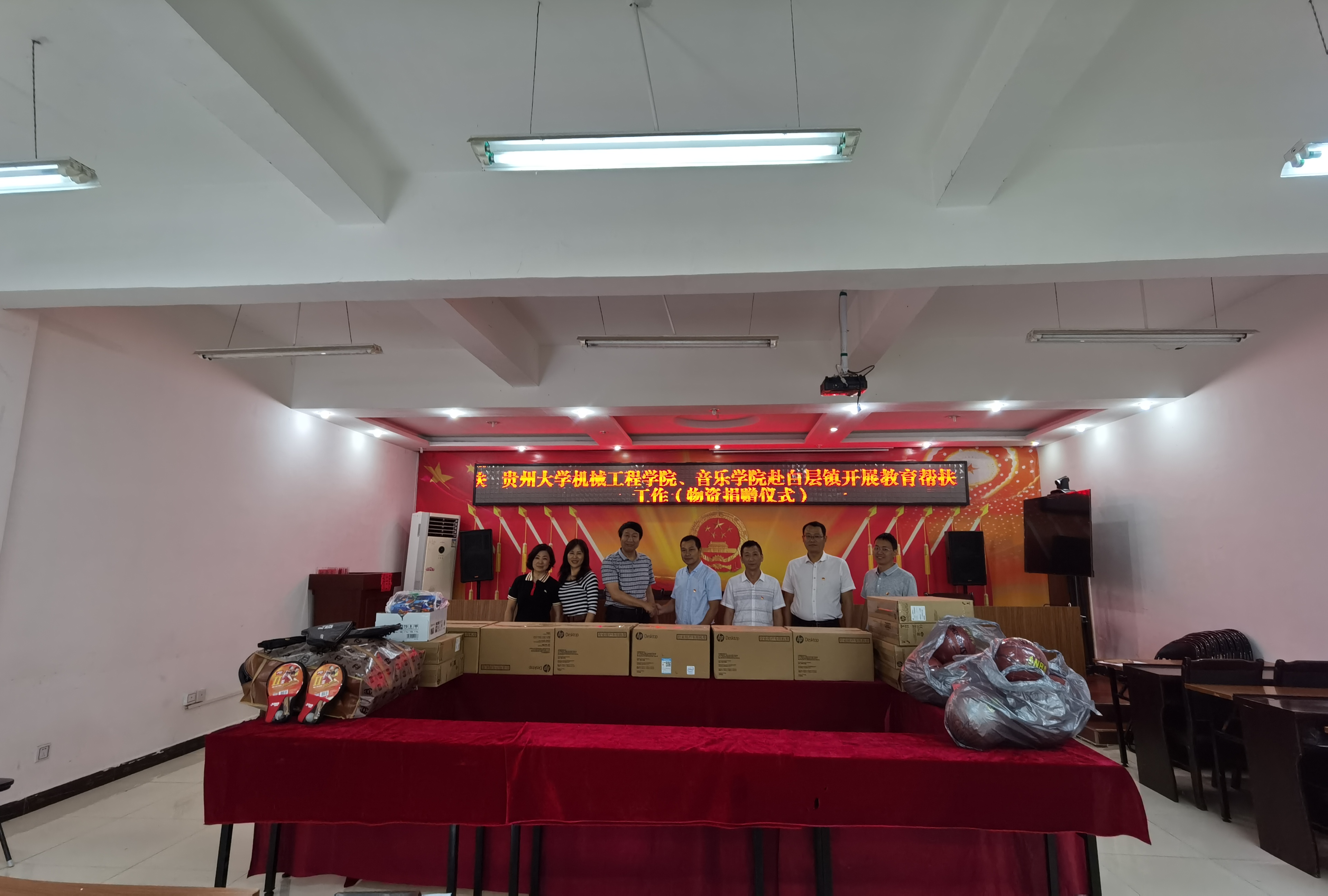 為認(rèn)真落實(shí)《中共貴州大學(xué)委員會(huì)助力脫貧攻堅(jiān)“一院一品”行動(dòng)計(jì)劃實(shí)施方案》,2020年7月2日,機(jī)械工程學(xué)院副院長(zhǎng)楊勤,辦公室主任敖雙艷,音樂(lè)學(xué)院辦公室主任楊風(fēng)琴等攜國(guó)藥集團(tuán)同濟(jì)堂(貴州)公司姜志海赴貴州省貞豐縣白層鎮(zhèn)開(kāi)展教育幫扶工作接洽暨物資捐贈(zèng)儀式,就助力脫貧攻堅(jiān)開(kāi)展工作接洽。貞豐縣白層鎮(zhèn)人大主席劉官浩、黨委副書(shū)記左德健、組織委員顧有權(quán)等鎮(zhèn)領(lǐng)導(dǎo)與兩個(gè)學(xué)院一行人進(jìn)行了座談。