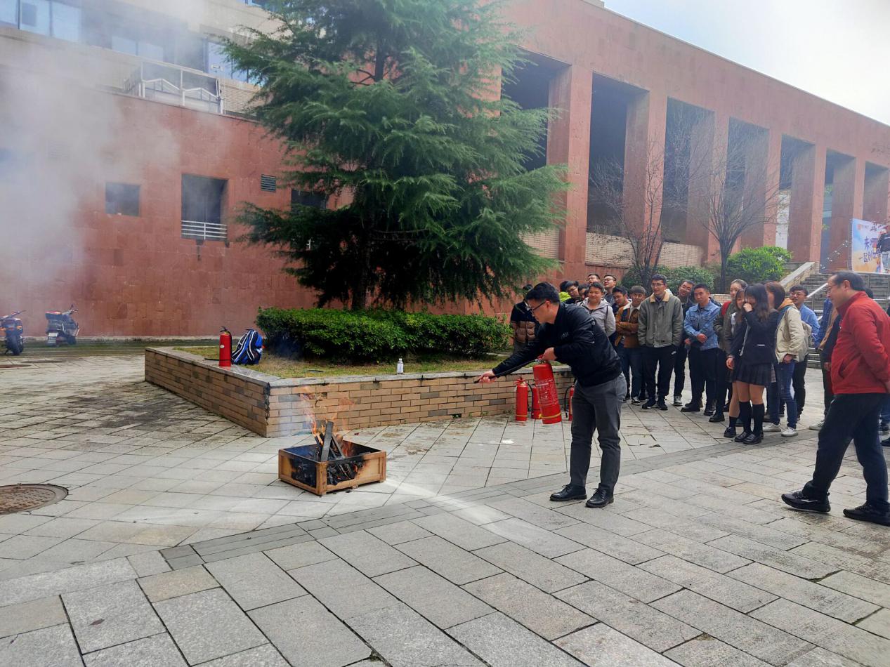 宣講會結(jié)束以后,在學(xué)院樓下的空曠處,進(jìn)行消防實(shí)訓(xùn)演習(xí)。艾老師一個步驟一個步驟的教老師和同學(xué)們?nèi)绾握_使用滅火器。隨后,還讓老師、同學(xué)們實(shí)踐操作,讓他們真正的學(xué)會使用滅火器滅火。大家也積極參加,現(xiàn)場氛圍熱烈。