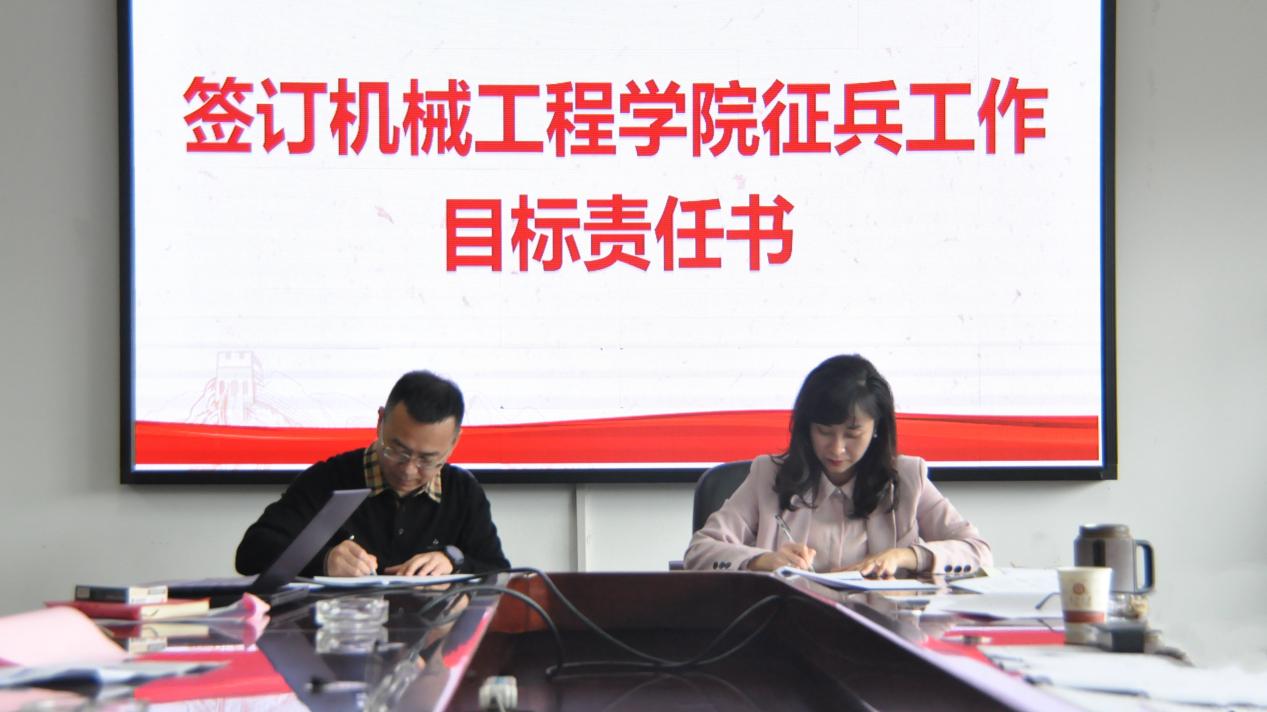 滕召華強調(diào)鼓勵畢業(yè)生參軍入伍的重要性,指出了現(xiàn)階段學(xué)院征兵工作存在的問題,對下一步工作的開展提出了相關(guān)要求,隨后相關(guān)系室主任與學(xué)院簽訂征兵工作目標(biāo)責(zé)任書。
