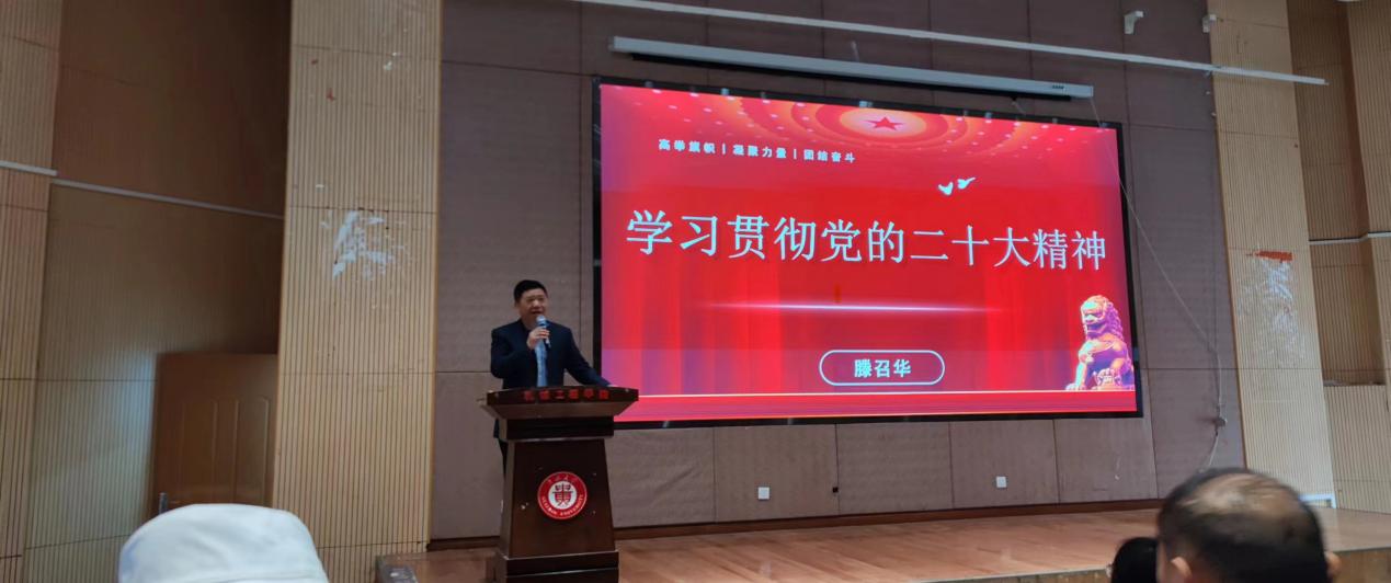 黨委書記滕召華對黨的二十大精神進行了詳細解讀,強調(diào)師生黨員要深入學(xué)習(xí)、深刻領(lǐng)悟黨的二十大精神,在學(xué)深悟透中切實把思想和行動統(tǒng)一到黨的二十大決策部署上來。