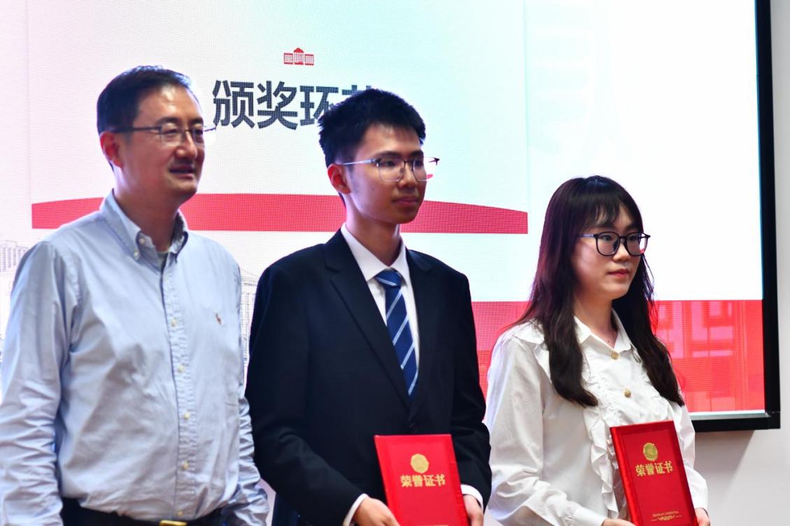 最后,領導為獲獎的同學頒發(fā)證書并合影留戀。