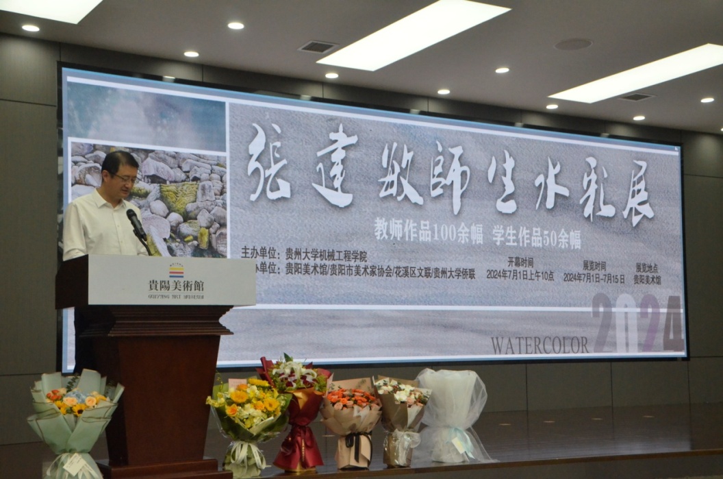 2024年7月1日上午,由貴州大學(xué)機械工程學(xué)院主辦,貴陽美術(shù)館、貴陽市美術(shù)家協(xié)會及花溪區(qū)文聯(lián)、貴州大學(xué)僑聯(lián)協(xié)辦的“張建敏師生水彩展”在貴陽美術(shù)館隆重開幕。