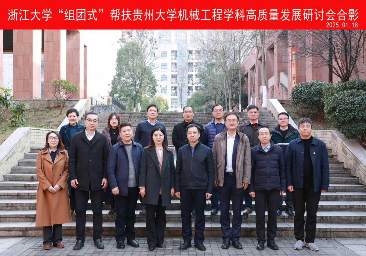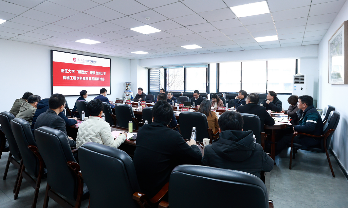 2025年1月18日,浙江大學(xué)機(jī)械工程學(xué)院項(xiàng)淑芳書記、徐兵常務(wù)副院長(zhǎng)、劉振宇副院長(zhǎng)、王柏村副院長(zhǎng)一行到貴州大學(xué)機(jī)械工程學(xué)院開展“組團(tuán)式”幫扶貴州大學(xué)機(jī)械工程學(xué)科高質(zhì)量發(fā)展交流研討,會(huì)議旨在加強(qiáng)“省校合作、校校合作”,創(chuàng)新探索“組團(tuán)式”幫扶學(xué)科新模式,助力貴州大學(xué)機(jī)械工程學(xué)科水平提質(zhì)升級(jí)。貴州大學(xué)黨委常委、副校長(zhǎng)李飛,貴州大學(xué)黨委組織部部長(zhǎng)羅衛(wèi)剛,機(jī)械工程學(xué)院黨委書記滕召華,院長(zhǎng)趙津,正處級(jí)組織員董蔚然,副院長(zhǎng)、現(xiàn)代制造教育部重點(diǎn)實(shí)驗(yàn)室常務(wù)副主任黃海松,副院長(zhǎng)李家春,副院長(zhǎng)唐正強(qiáng),各系室主任,各學(xué)位點(diǎn)負(fù)責(zé)人出席會(huì)議,浙江大學(xué)機(jī)械工程學(xué)院、貴州大學(xué)公共大數(shù)據(jù)國家重點(diǎn)實(shí)驗(yàn)室馮毅雄教授主持會(huì)議。