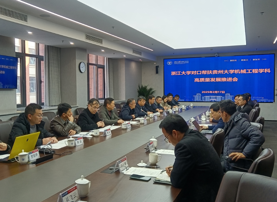 2025年2月17日早上9:00,貴州大學(xué)李飛副校長帶隊赴浙江大學(xué)機械工程學(xué)院調(diào)研,推進(jìn)“組團(tuán)式”幫扶學(xué)科建設(shè)工作。期間召開“浙江大學(xué)對口幫扶貴州大學(xué)機械工程學(xué)科高質(zhì)量發(fā)展推進(jìn)會”。