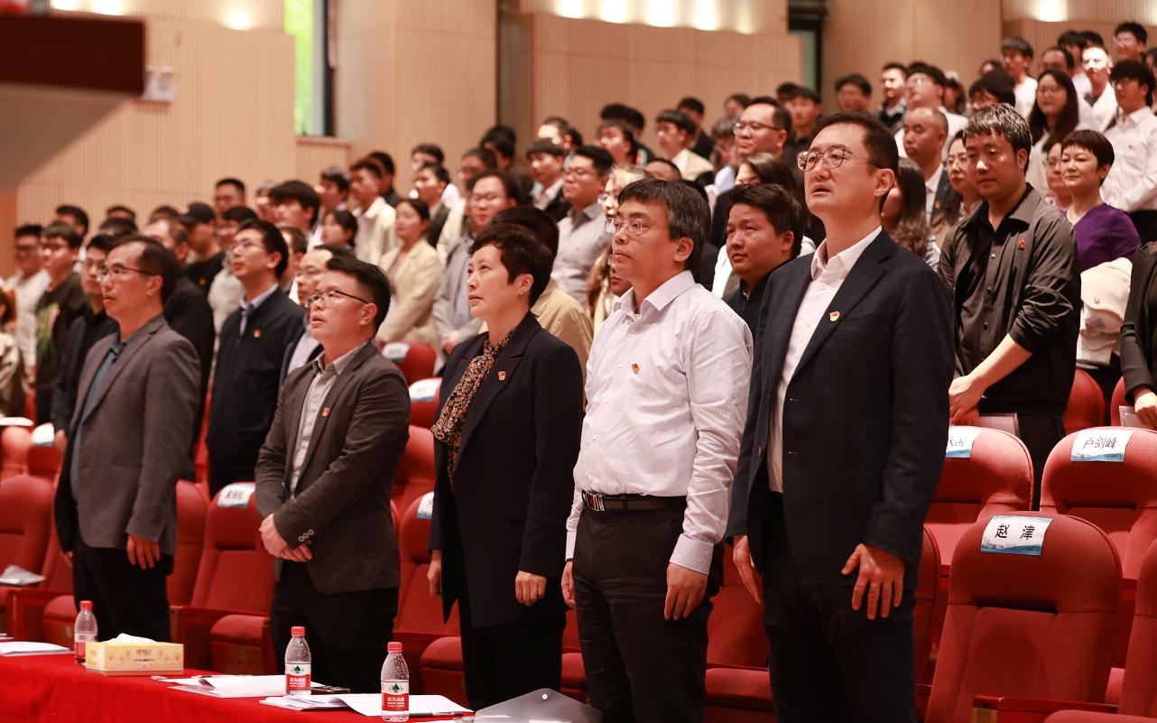 大會(huì)在莊嚴(yán)的國(guó)歌聲中拉開(kāi)帷幕,全體黨員起立唱響國(guó)歌。