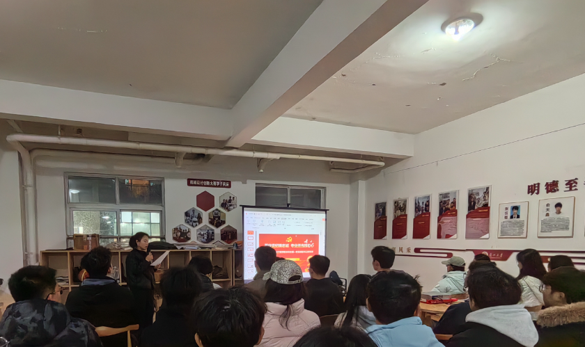 活動第二環(huán)節(jié)由本科生第一黨支部副書記楊朵以“嚴守黨紀鑄忠誠 專業(yè)擔當踐初心”為題講授專題黨課。黨課首先闡述了深刻把握黨紀建設的時代內涵與核心要求,強調了嚴守黨的紀律是黨的生命線和重要保障;其次對《中國共產黨紀律處分條例》的核心內容進行了系統(tǒng)解讀,幫助同志們明確行為邊界,筑牢紀律防線;最后明確青年黨員實踐路徑,提出將紀律要求融入專業(yè)成長,既要在學習科研中嚴守學術規(guī)范,又要在集體生活中發(fā)揮先鋒模范作用,以紀律約束強化擔當,用專業(yè)能力踐行初心。