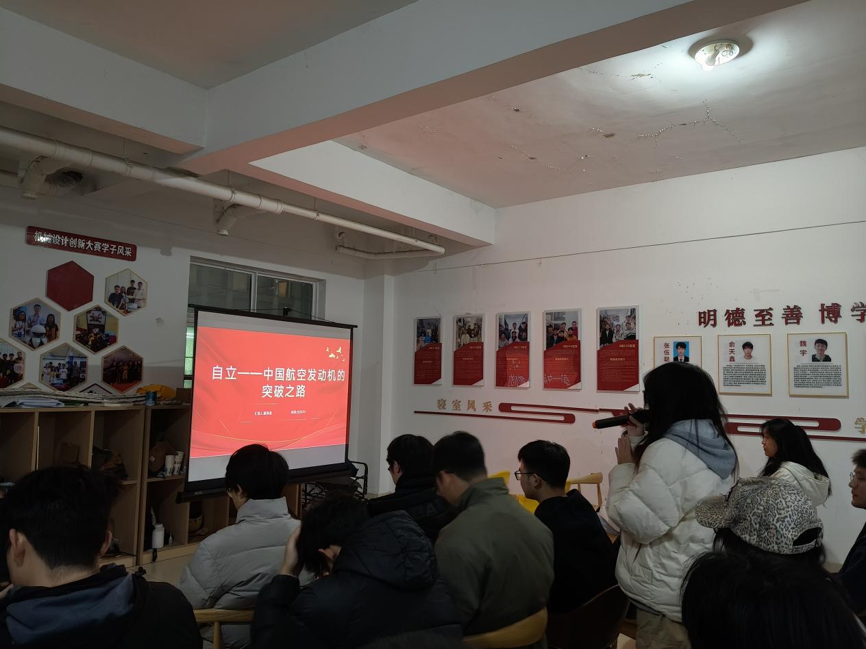 活動第一環(huán)節(jié)由預備黨員董澤圣主講第二期工業(yè)講堂,以《自立——中國航空發(fā)動機的突破之路》為題,從中國航空發(fā)動機產業(yè)的發(fā)展歷程入手,剖析在技術封鎖背景下,我國科研工作者攻堅克難、自主創(chuàng)新的奮斗故事,闡述航空發(fā)動機領域實現關鍵突破的技術路徑與戰(zhàn)略意義。宣講內容既有專業(yè)知識解讀,又有家國情懷的生動傳遞,讓在場學生深刻感受到“自立自強”對于國家科技發(fā)展的重要性,進一步激發(fā)了學生深耕專業(yè)、報效祖國的熱情。